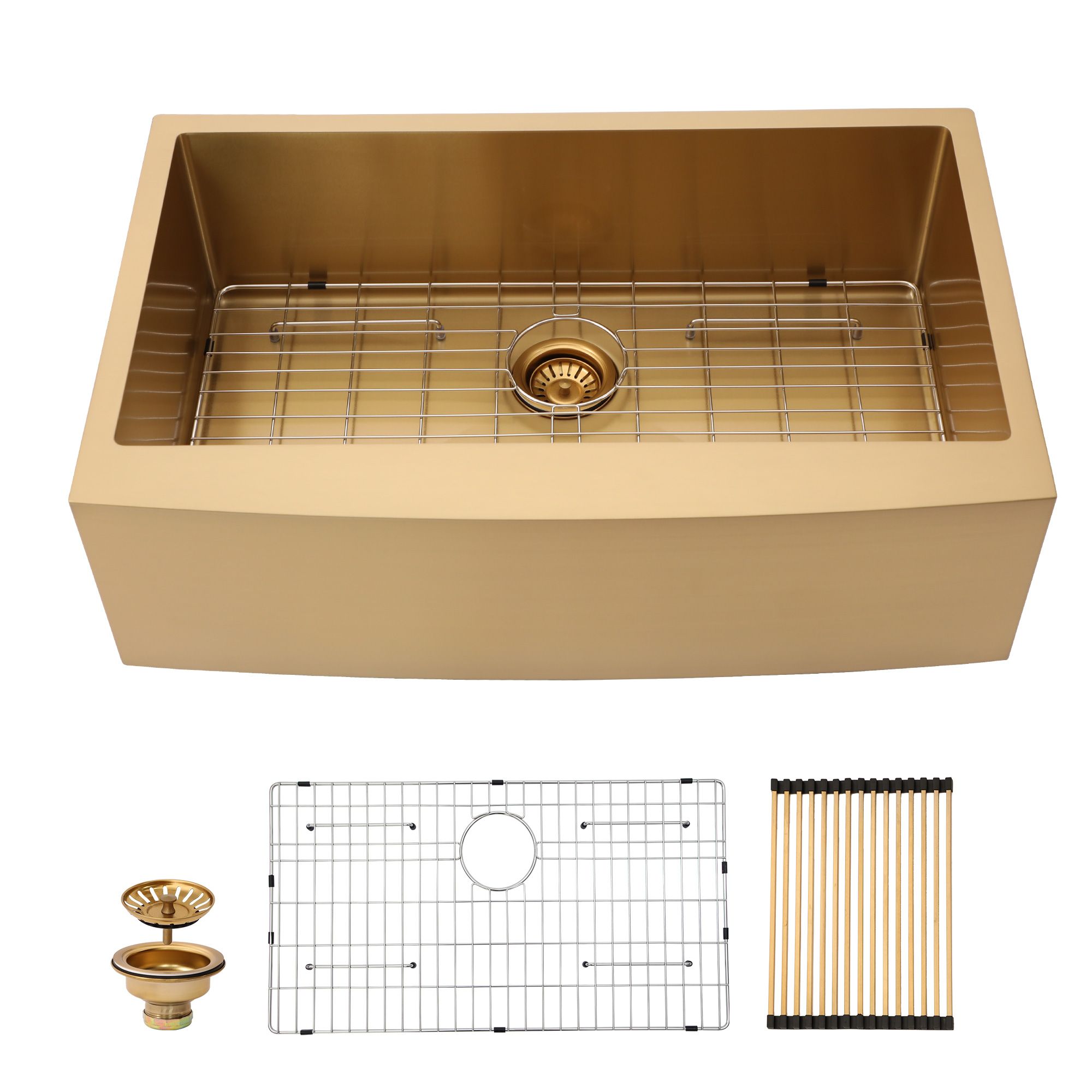 Lordear Gold Farmhouse Sink 16 Gauge Kitchen Sink Apron Front Single Bowl Rose Gold Stainless Steel Sink Lordear Gold Farmhouse Sink 16 Gauge Kitchen Sink Apron Front Single Bowl Rose Gold Stainless Steel Sink Lordear Gold Farmhouse Sink 16 Gauge Kitchen Sink Apron Front Single Bowl Rose Gold Stainless Steel Sink