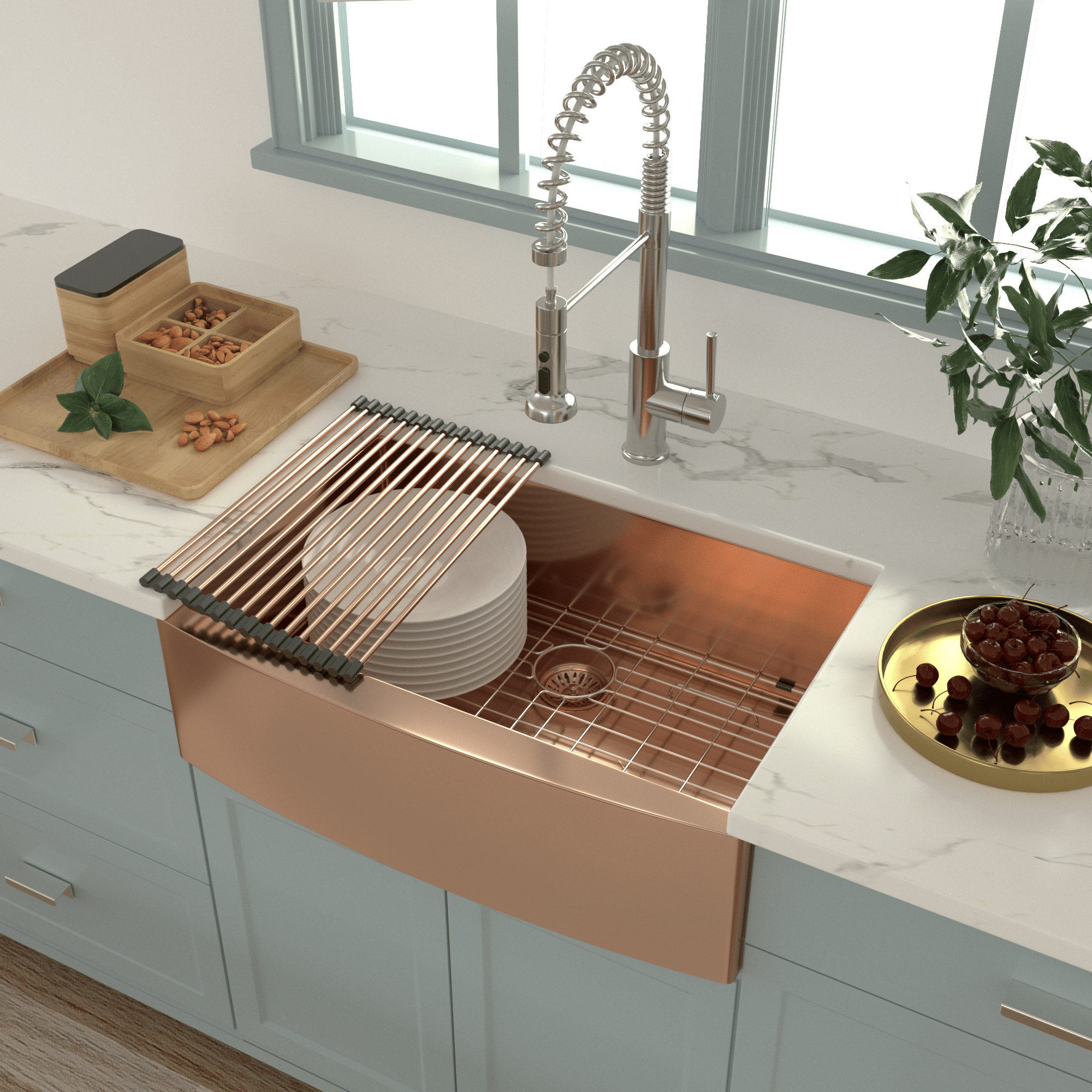 5.This curved-front apron kitchen sink offers enhanced comfort by minimizing the need for bending over, with no cabinet or countertop obstruction between you and the sink, simplifying dish-washing tasks.