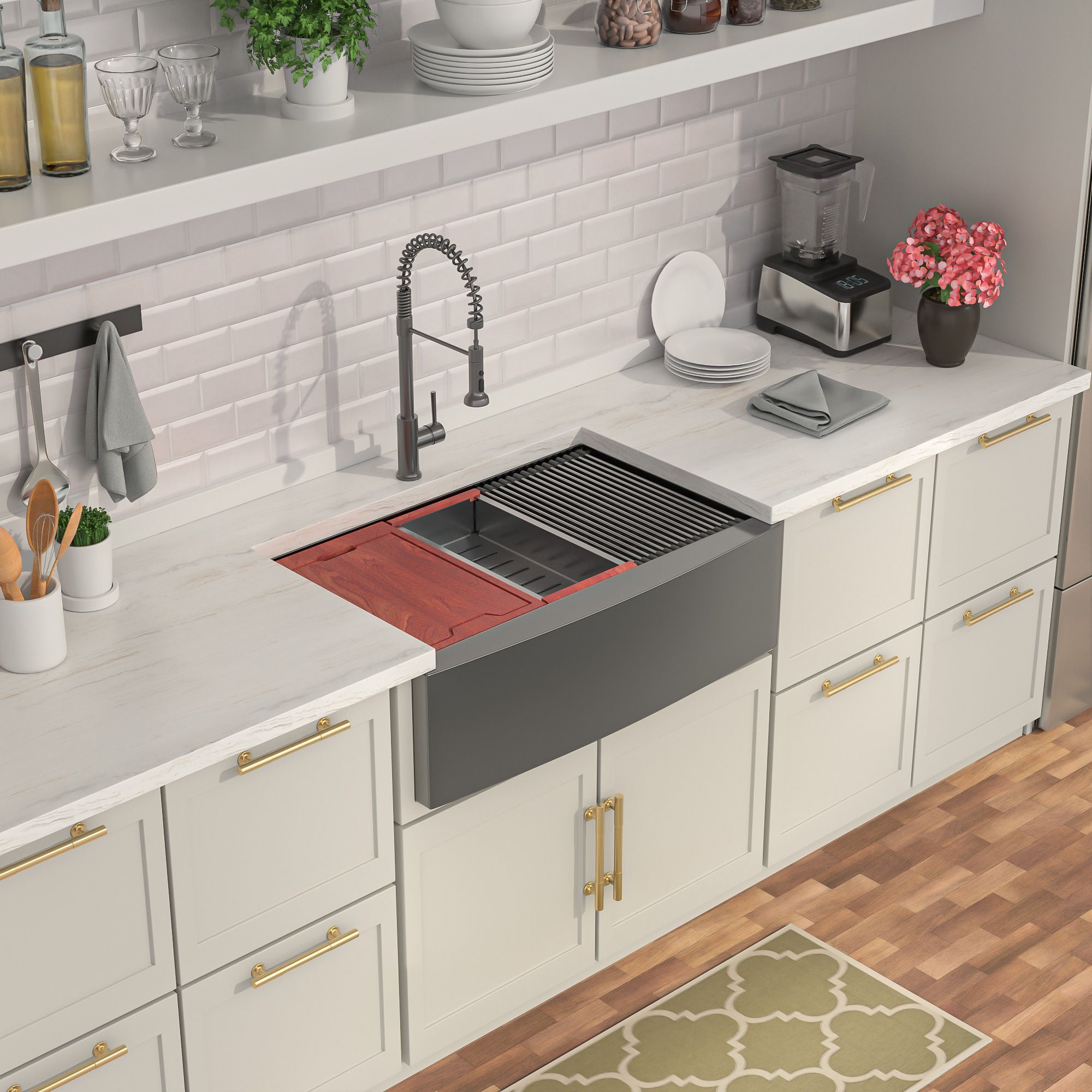 Farmhouse Sink Kitchen Sink Apron Front Single Bowl Workstation Stainless Steel Sink