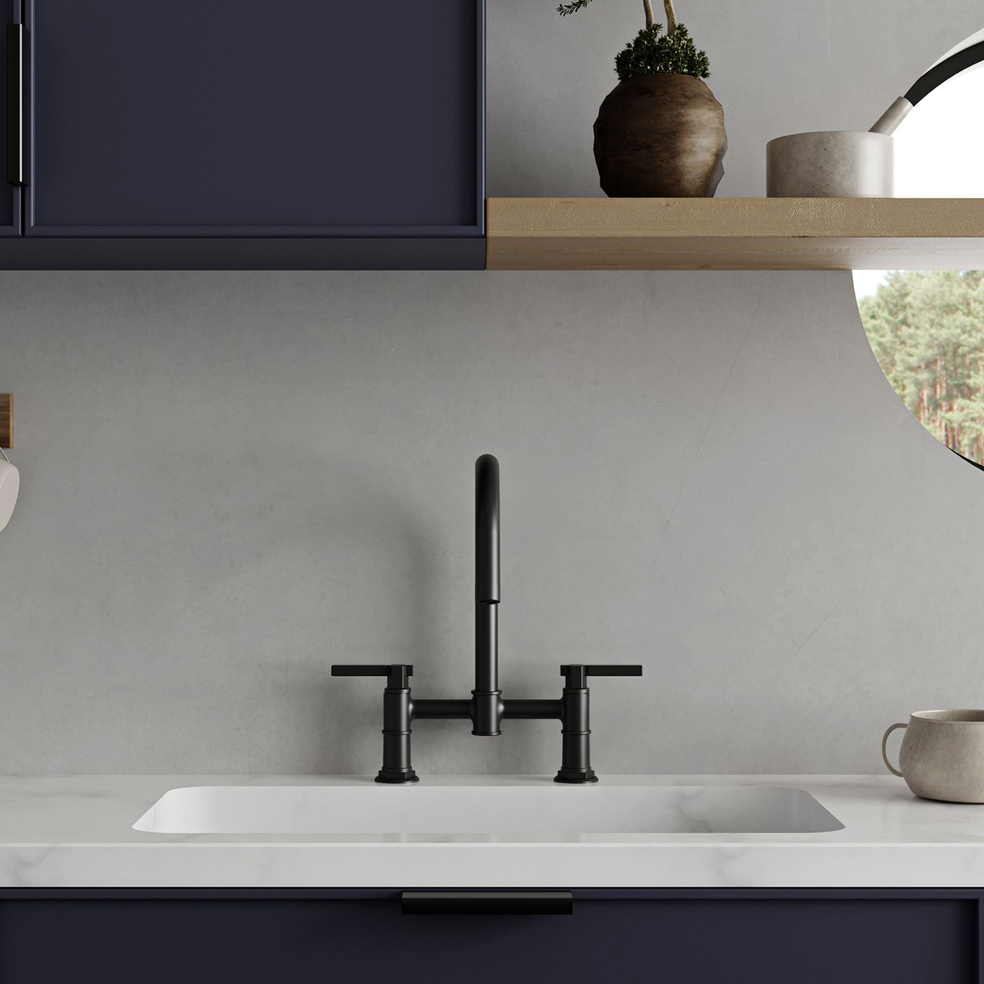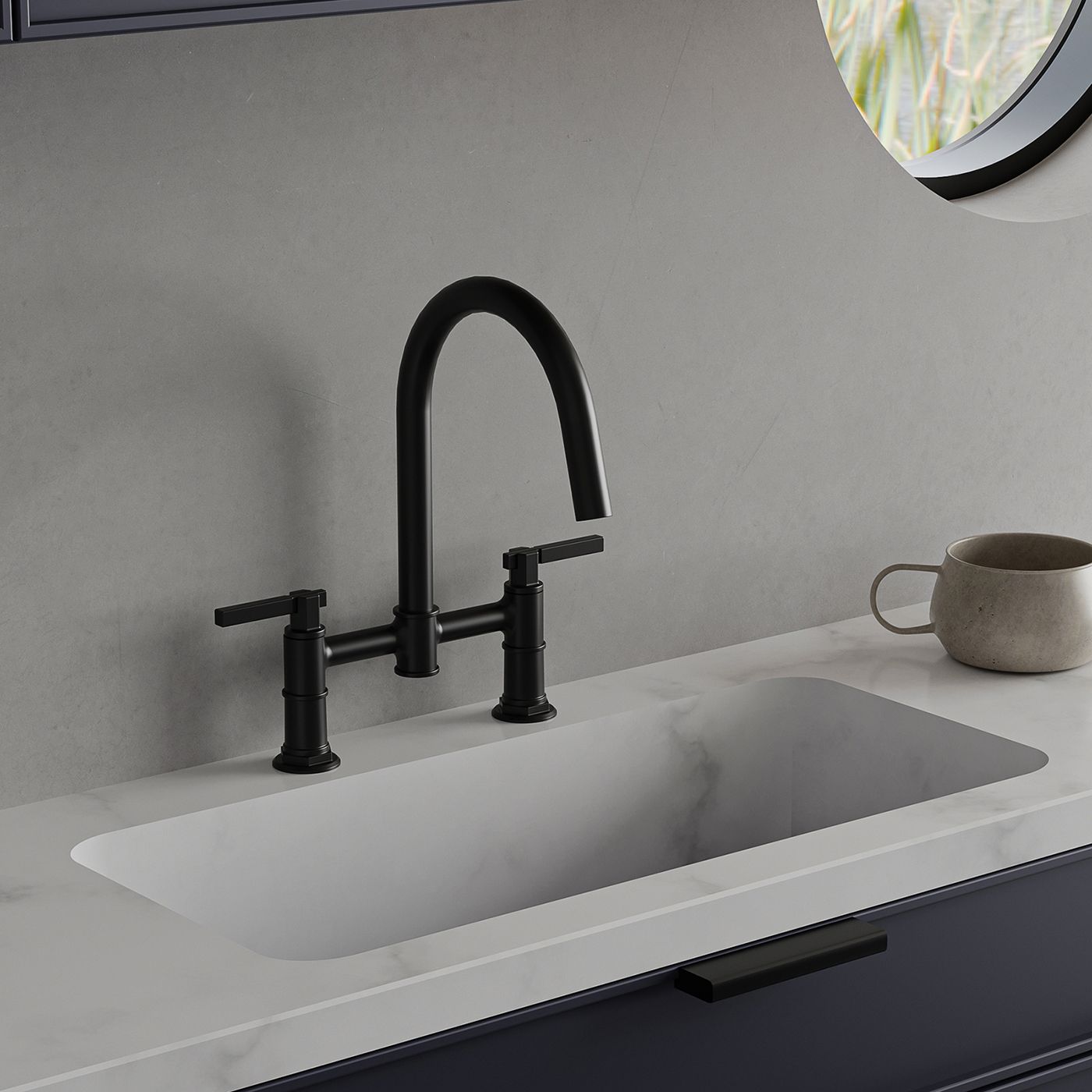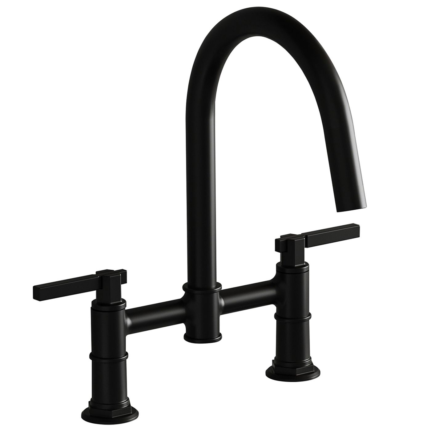Modern Double Handle 2 Holes Deck Mount Bridge Kitchen Faucet With 360 Swivel Spout Sink Faucet In Matte Black Modern Double Handle 2 Holes Deck Mount Bridge Kitchen Faucet With 360 Swivel Spout Sink Faucet In Matte Black Modern Double Handle 2 Holes Deck Mount Bridge Kitchen Faucet With 360 Swivel Spout Sink Faucet In Matte Black