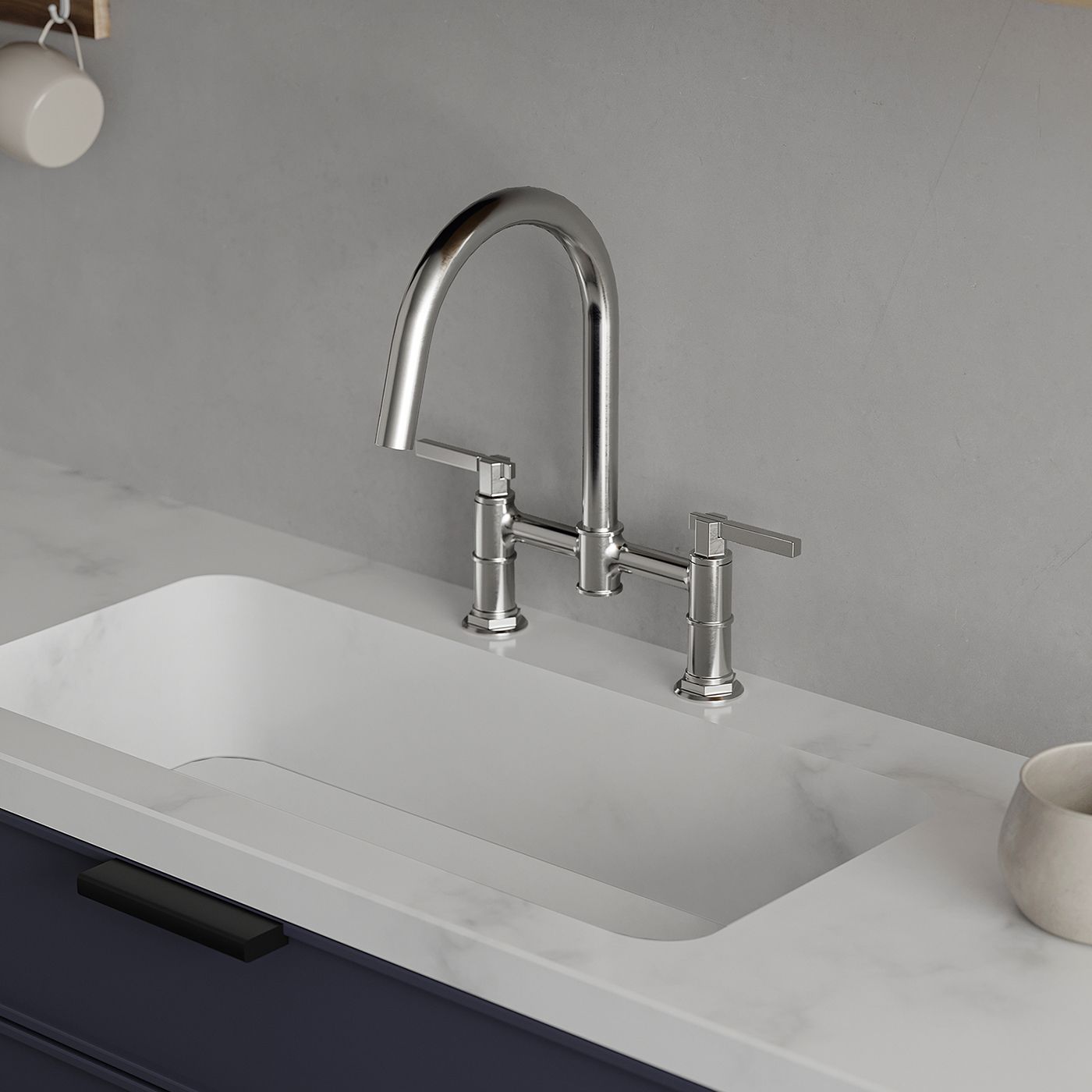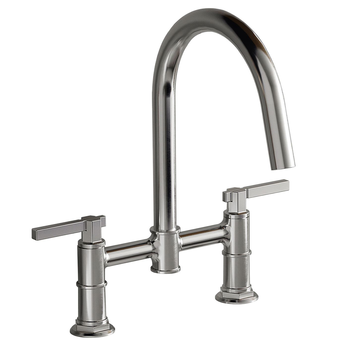 This Double Handle Bridge Kitchen Faucets has a streamlined silhouette that coordinates with any kitchen sink. 2-holes design makes installation easier This kitchen sink faucet is made with quality components in order to ensure superior performance and durability. High-arc spout can be rotated 360°.