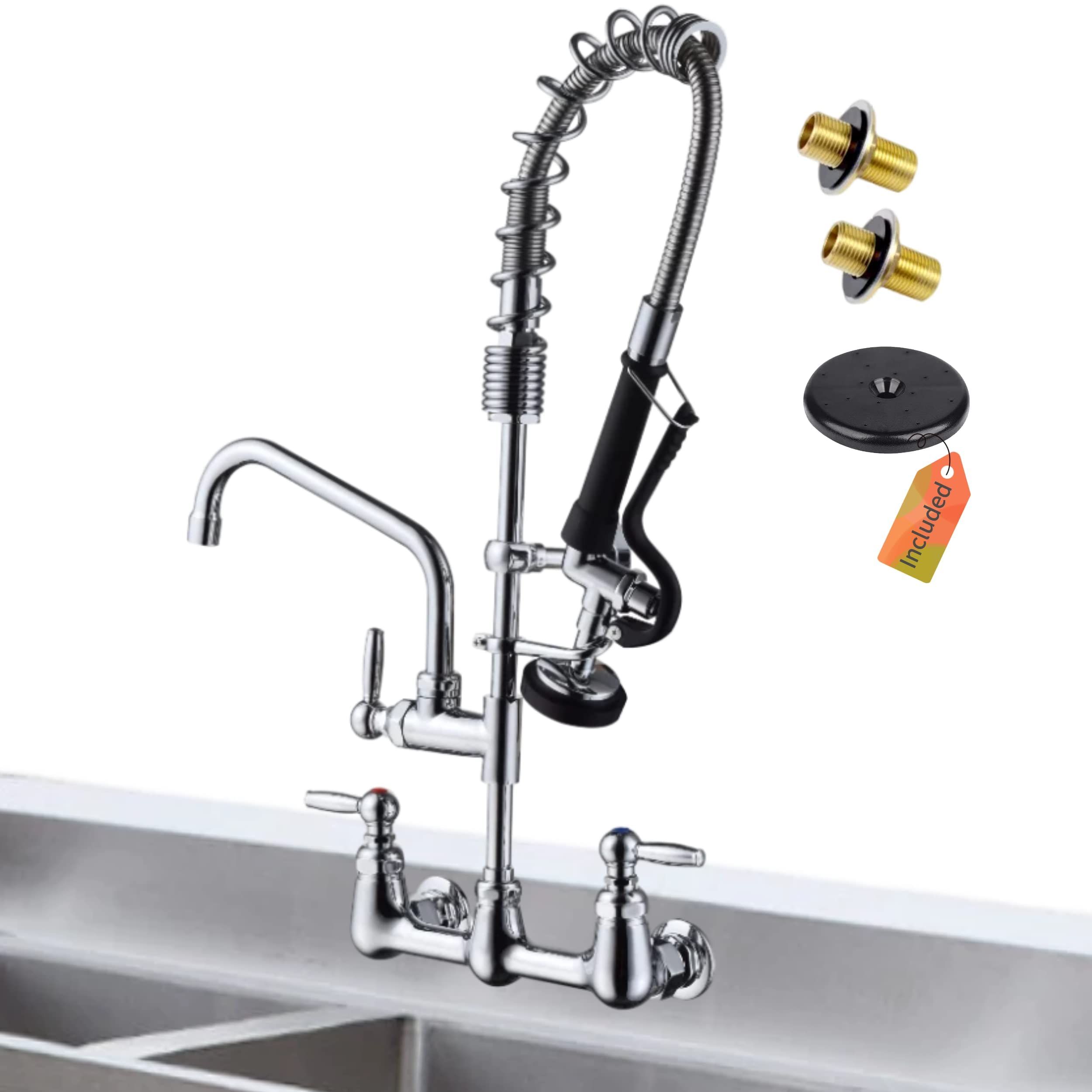 3.The commercial faucet it can realize pre-rinse and water storage function at the same time. The 12 inch spout on the commercial faucet can be connected to water suppler hose to fulfill long distance cleaning, such as pet cleaning, garden watering, fisher commercial cleaning, car etc. On the other hand, the commercial faucet with sprayer is the best partner to the dish-washing machine of restaurant kitchen.