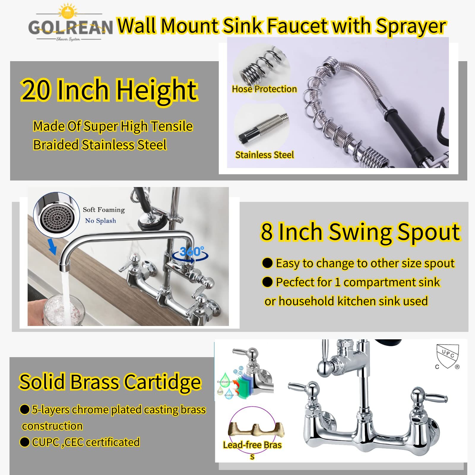 5.[Closure testing] is apply to the handles which will be turn on and off for over 100 thousand times.[Bending test] is apply to the add on spout which will be bend back and forth over 100000 cycles.[Water pressure testing] Each sprayer of commercial kitchen faucet in the factory will be done the water pressure test to ensure the sprayer is not Clogged. Use the Golrean faucet, without worries behind.