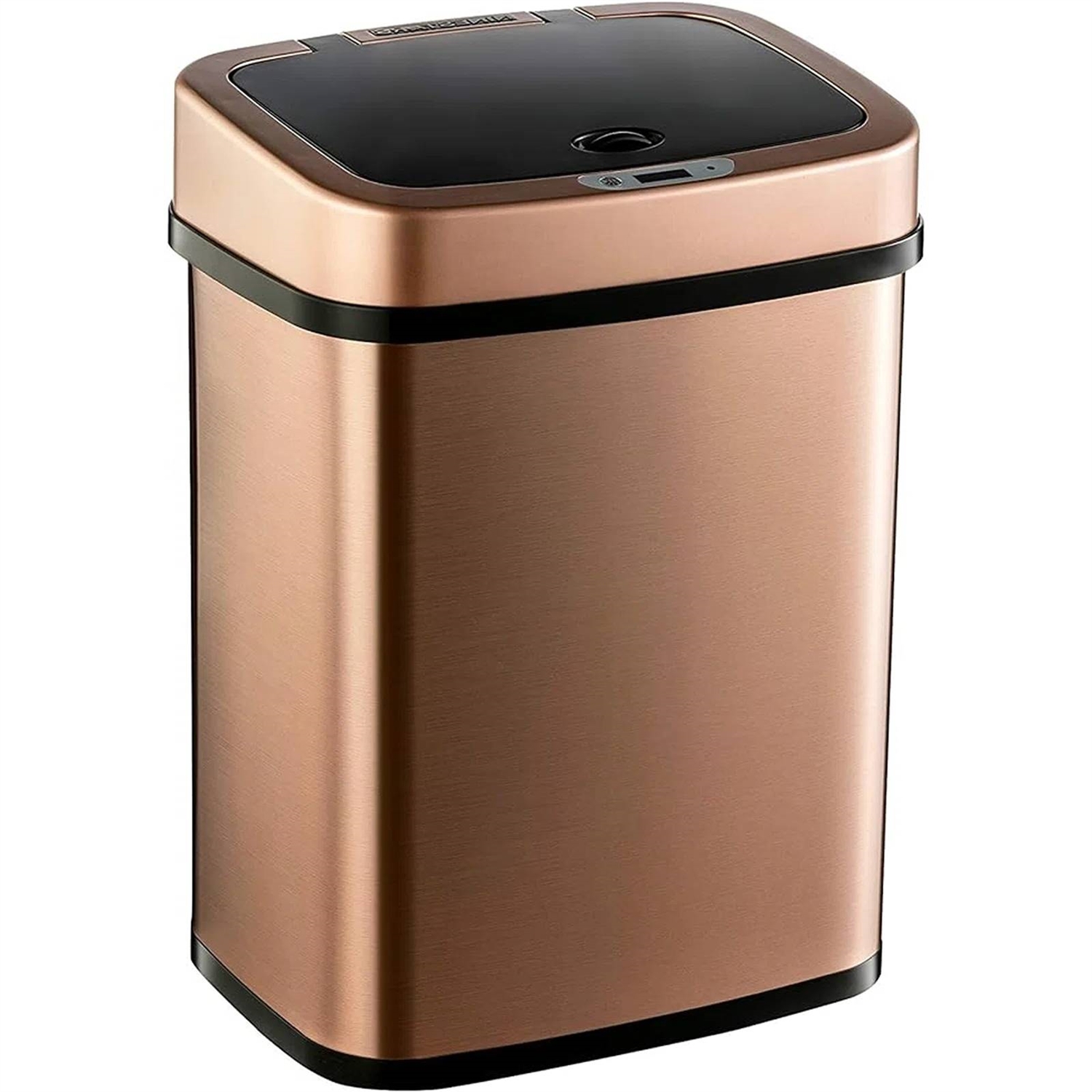 • 3-Gallon Copper Rose Gold Stainless Steel Trash Can with Motion Sensor Lid