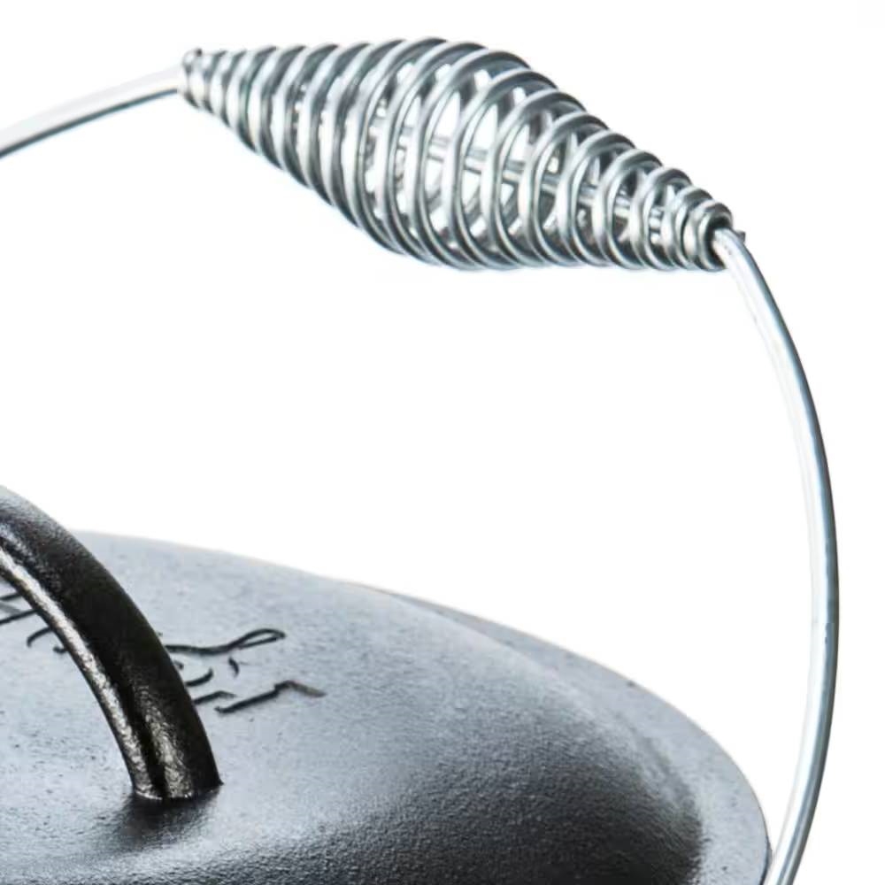 • The 5-Quart Seasoned Cast Iron Dutch Oven with Lid and Spiral Wire Handle has been popular for over a century and is perfect for camp and hearth cooking.